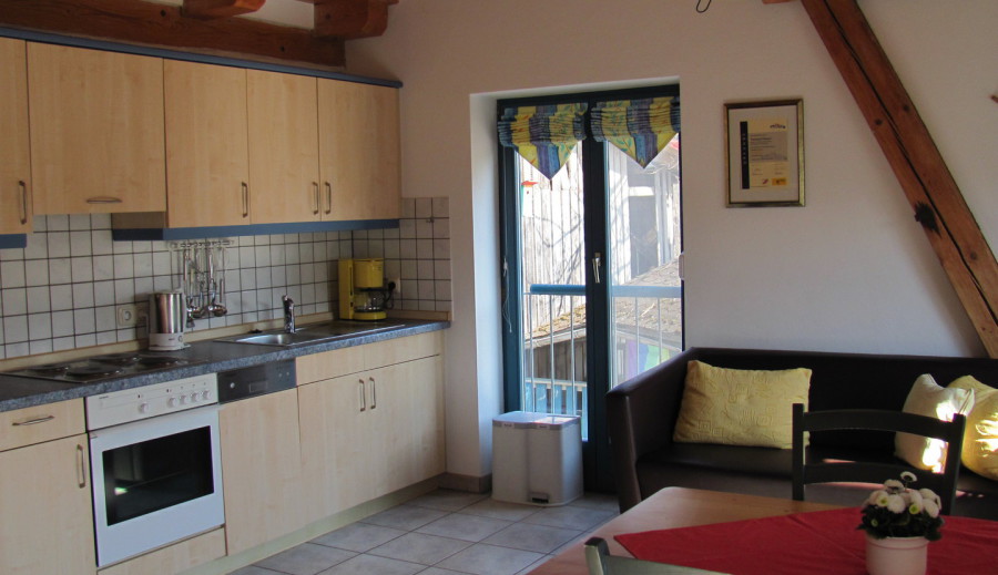Auf ca. 65 qm bietet die Wohnung ausreichend Platz. Die Wohnung in Form einer großen Maisonettewohnung mit offener Schlafgalerie wirkt hell und geräumig. Auf dem großen Balkon lässt es sich gemeinsam Essen oder mit Blick ins traumhafte Anlautertal die Sonnenstrahlen genießen.